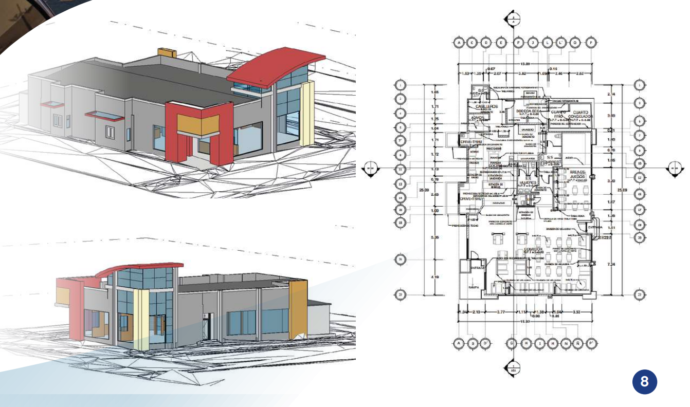 Levantamiento arquitectónico tradicional con apoyo de vuelo de dron para generación de planos arquitectónicos y modelado BIM en Wendys.